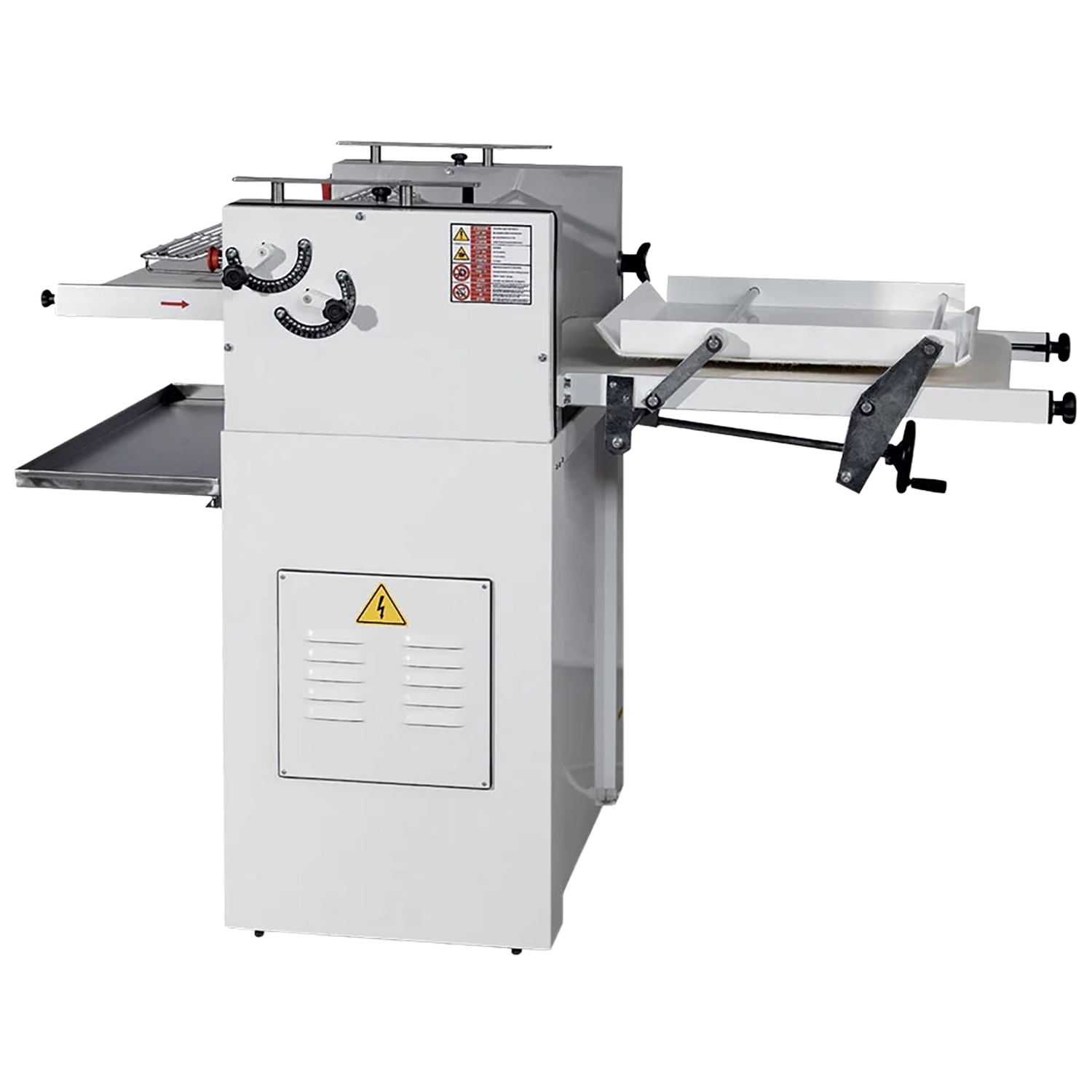 Masinile vin echipate standard cu banda de alimentare la intrare, protectie de siguranta conform normelor, dispozitiv pentru returnarea formatelor, doua bancute de lucru, sistem de blocare pentru platul superior si 4 roti autoblocante pentru mobilitate usoara in brutarie. Tot echipamentul necesar pentru a incepe lucrul imediat dupa instalare.